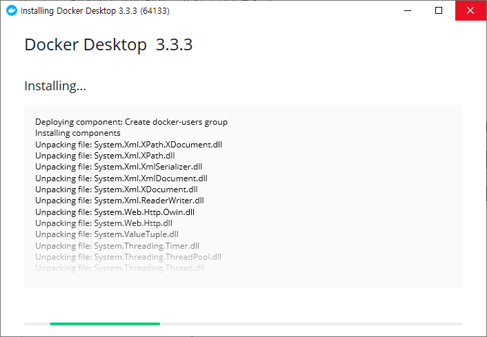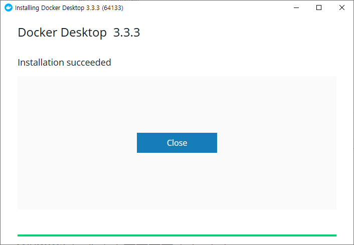 저는 이미 설치가 되어 있어서 처음 설치하시면 Close and restart라고 나오실 겁니다. 이후 재부팅하시고 나면 정상적으로 설치가 완료됩니다. (트레이 아이콘에서 고래를 확인!)