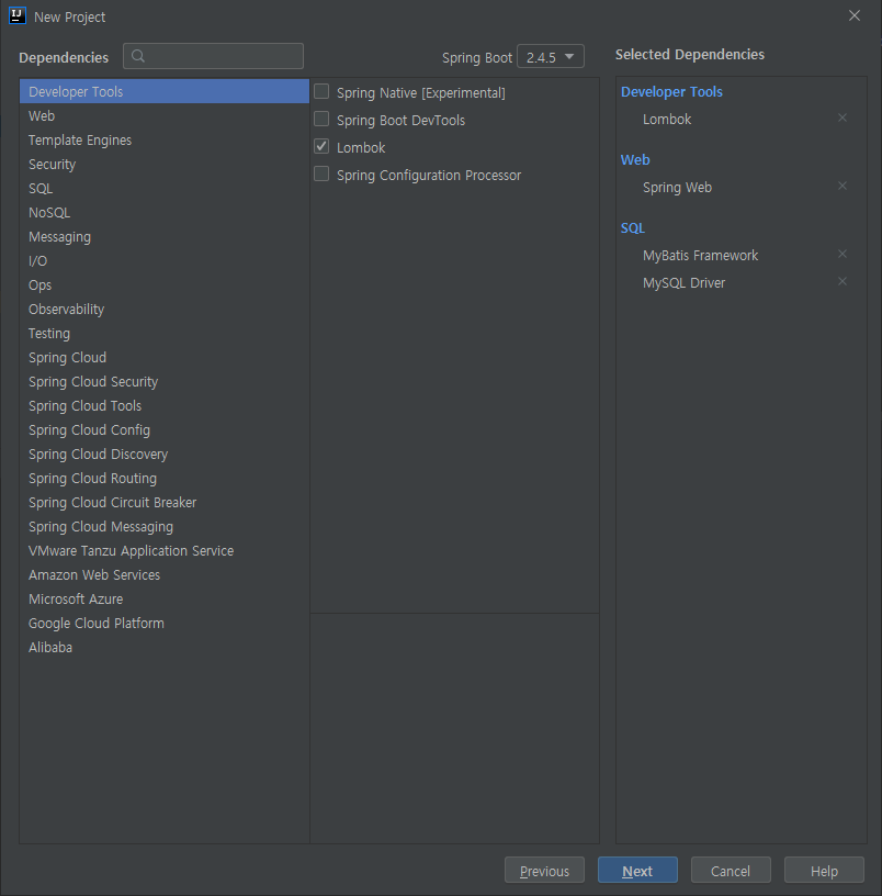 사실 Spring Web이나 Lombok 또한 빼셔도 상관은 없습니다만, Lombok은 제가 Spring Boot로 작업할 때 너무 편하게 사용 중이라 어떤 프로젝트를 진행해도 항상 넣습니다. 그리고 Spring Web은 초기에 프로젝트 설정을 완료하면 테스트 웹페이지를 보여줄 용도로 사용할 예정이라 빼셔도 됩니다.