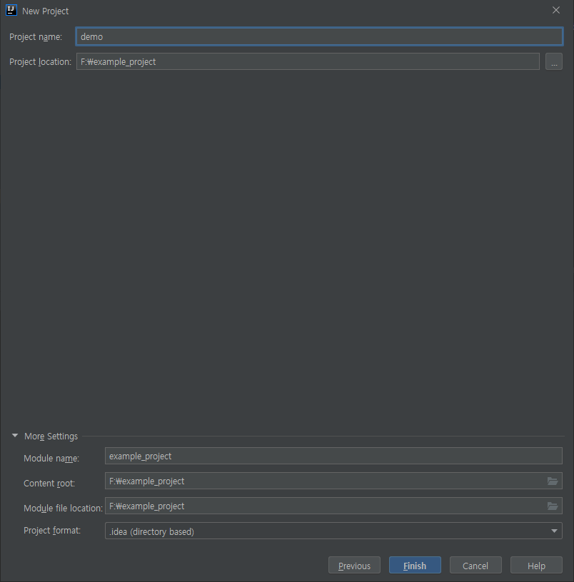 이후 새 프로젝트가 완성됩니다.