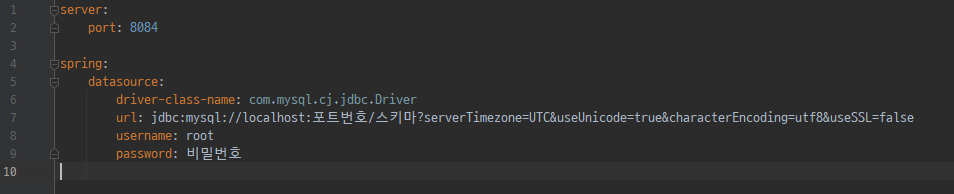 username은 그냥 root로 해놨는데 혹시나 변경하셨다면 바꾸시면 됩니다.