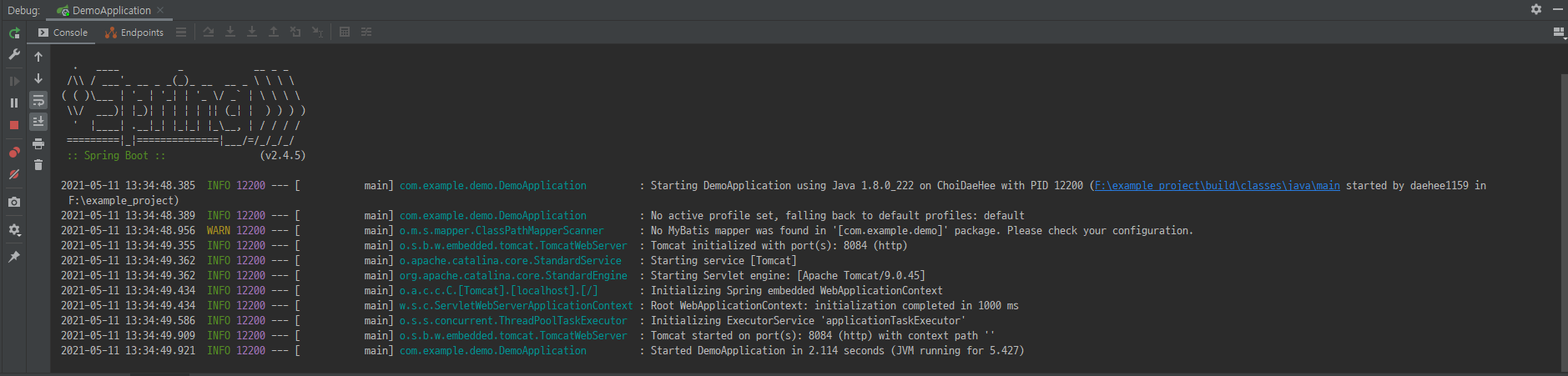 이렇게 설정하고 Application을 실행시켜보면 정상적으로 실행이 되는 것을 확인할 수 있습니다.