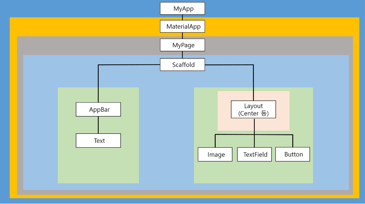 2. 한 Widget내에 얼마든지 다른 widget들이 포함될 수 있음