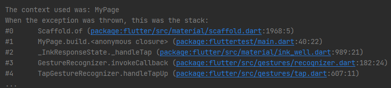 Scaffold.of(context)를 통해 Scaffold의 위치를 찾아가려고 했으나 of() 메서드가 사용한 BuildContext는 MyPage의 것이기 때문에 오류가 발생한 것입니다.
