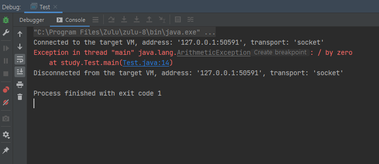 그래서 이 divide 메서드를 호출한 main 메서드에서 try catch 문을 통해 예외처리를 진행했습니다.
