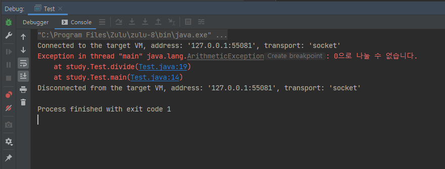 throw new ArithmeticException("0으로 나눌 수 없습니다.");