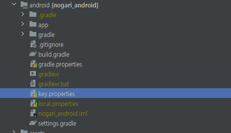 발행한 key를 참조하려면 android/key.properties 파일을 생성합니다.