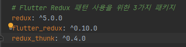 Flutter에서 Redux를 사용하기 위해서는 위 3가지 패키지를 추가해야 합니다.