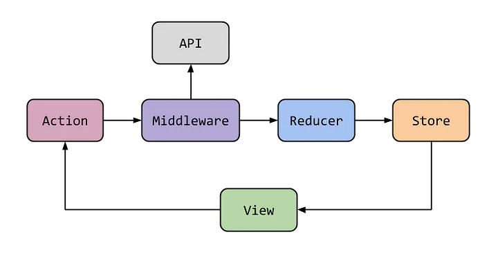 - 미들웨어 (Middleware) : 액션이 디스패치되어서 리듀서에 도달하기 전에 실행되는 코드입니다. 미들웨어는 액션의 처리를 가로채고, 필요한 로직을 수행한 뒤에 액션을 계속 진행하거나 중단시킬 수 있습니다. 주로 API 통신을 진행할 때 이 미들웨어에서 진행합니다.