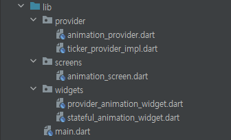 기본적으로 애니메이션은 StatefulWidget 클래스를 상속하여 만들 수 있습니다. 그러나 이것은 애플리케이션의 규모가 커질수록 상태관리의 어려움이 있기 때문에 저는 이것을 Provider에 적용시켜 봤습니다.